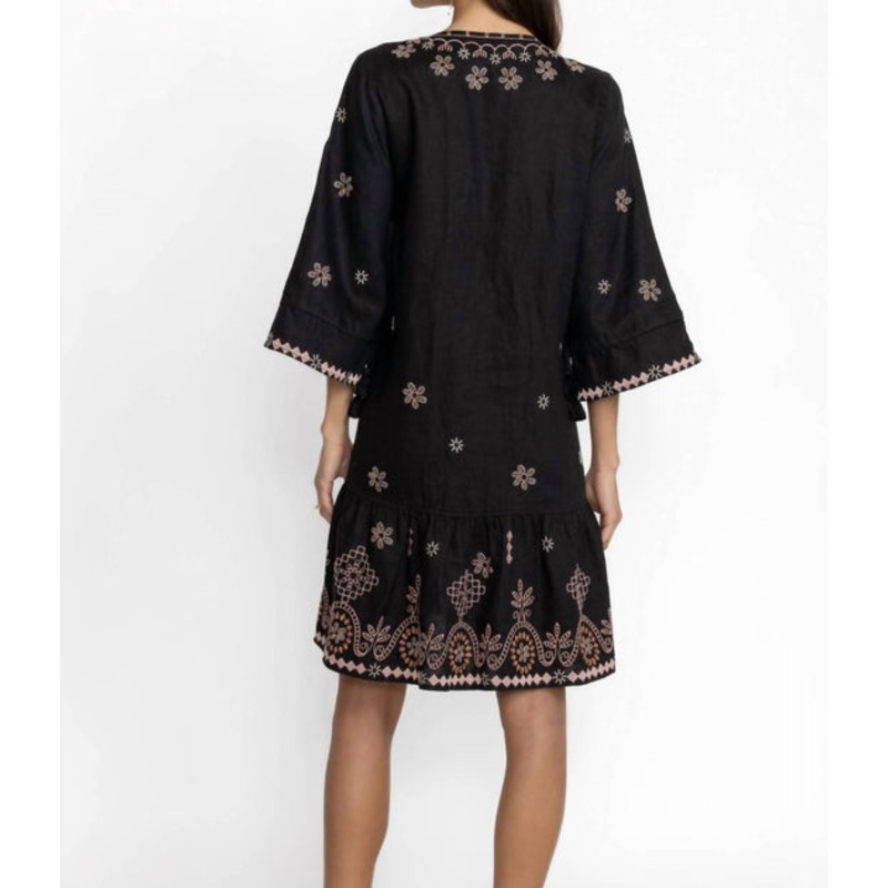Cute and comfortable, this long sleeve dress has it all.Kimona sleeve flounce dress-vneck-pink & white embroidery - relaxed fit
