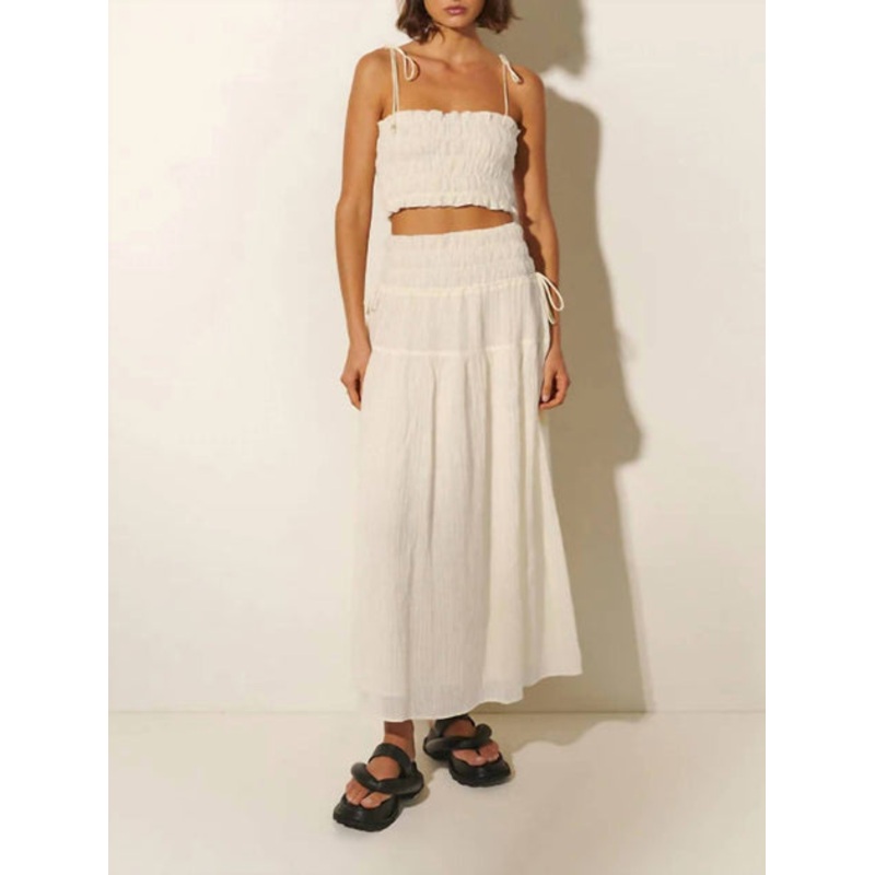 Who doesn't love a good maxi skirt?Elasticated waist. Adjustable drawcords. Gold bead details. Gathered tiered skirt. Hand wash cold separately. 55% Ramie45% Cotton.